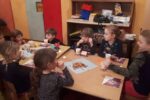 Otroci so se lepo vživeli v praznovanje se malo pogostili in okrepčali s čajem.