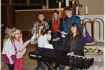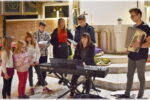 Ob spremljavi glasov harmonike, violončela in violine je pet sestric in trije bratje zapelo pesmi