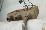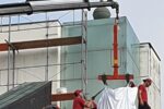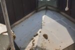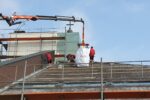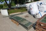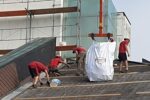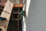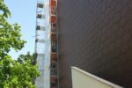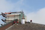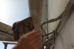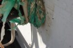 Istočasno poteka sanacija betonskih zidov. Železno armaturo, ki je vidna in rjavi, očistijo, zaščitijo s premazom in z zaščitno malto za beton. Sedaj že na prilepljeni stiropor lepijo mrežo …