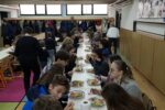 Po lepem bogoslužnem obredu na praznik Svete družine, ki ga je s kvalitetnim petjem okrasil ženski vokalni kvartet Rozalije, smo bili romarji pred začrtano potjo, postreženi z dobrim kulinaričnim dosežkom. Pripravili so ga zavzeti možje iz kuharske šole “Tri D” ( Dani Ros, Danč Ajlec, Dejan Berič).