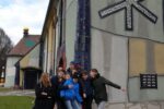 Segreta kolesa romarskega avtobusa so pridno požirala avstrijske ceste in že smo se pripeljali do župnijske cerkve sv. Barbare v Bärnbachu. Naš prvi vtis: nenavadna cerkev. Pozlačena čebulasta kupola, fasada cerkve zapolnjena z raznimi dekorativnimi elementi in keramiko, štiri različne ure na zvoniku in sploh veliko simbolike. Tudi notranjost je zanimiva, še posebej izstopa tlak iz ploščic, ki so neenakomerno položene; barvno okno, upodobljeno v spiralo življenja; stekleni kvadrasti oltar, napolnjen s prstjo iz raznih krajev sveta in seveda križ s korpusom iz katerega krožno sevajo žarki iz stekla. Vse te nenavadnosti je v svoji fantazijski zagnanosti zasnoval umetnik mnogih talentov Hundertwasser (Stowasser). Polepšal je tudi okolico cerkve, saj je na valovita tla postavil dvanajst prehodov, ki ponazarjajo glavne vere sveta.