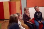 Pogovor smo začeli z molitvijo, sledila je zgodba iz Svetega pisma – Jezus blagoslavlja otroke. Zapeli smo pesmico Dober dan vsem skupaj in tako pozdravili vsakega otroka. Zapeli smo pesmico Jezus moj ljubim te in na željo otrok še Mi se imamo radi, Jezusa in Marijo imamo radi.