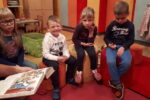 Otroci so Sveto pismo prijeli v roke in ugotovili, da je težka. Pogledali smo slike. Ogledali so si tudi otroška Sveta pisma.