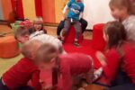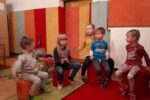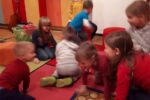 Ob zbiranju so se otroci igrali z lego kockami in sestavljali sestavljanke o živalih. Skupaj smo pripravili oltarček in zmolili molitev. Prebrali smo zgodbo iz Svetega pisma – zgodba o Danijelu in njegovih prijateljih, jo obnovili s pogovorom in nato še prebrali pesem Hvalnico treh mladeničev. Pesem smo obnovili z vprašanjem, za kaj vse so se zahvaljevali mladeniči. Zapeli smo pesem Kdo je ustvaril. V delavnici so otroci ponazorili živali, vreme. Pogovarjali smo se o zahvalni nedelji in vsak otrok je na koncu ob molitvi izrekel tudi svojo zahvalo.