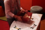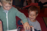 Nadaljevali smo z zgodbico – Jezus blagoslavlja otroke. Zgodbo smo skupaj obnovili. Otroci so na list papirja narisali sebe, saj so izrazili, da bi tudi oni radi prišli k Jezusu. Risbice so položili k Jezusovi sliki. Sledila je skupna dramatizacija. Otroci so prihajali k Jezusu ob pripovedovanju zgodbe.